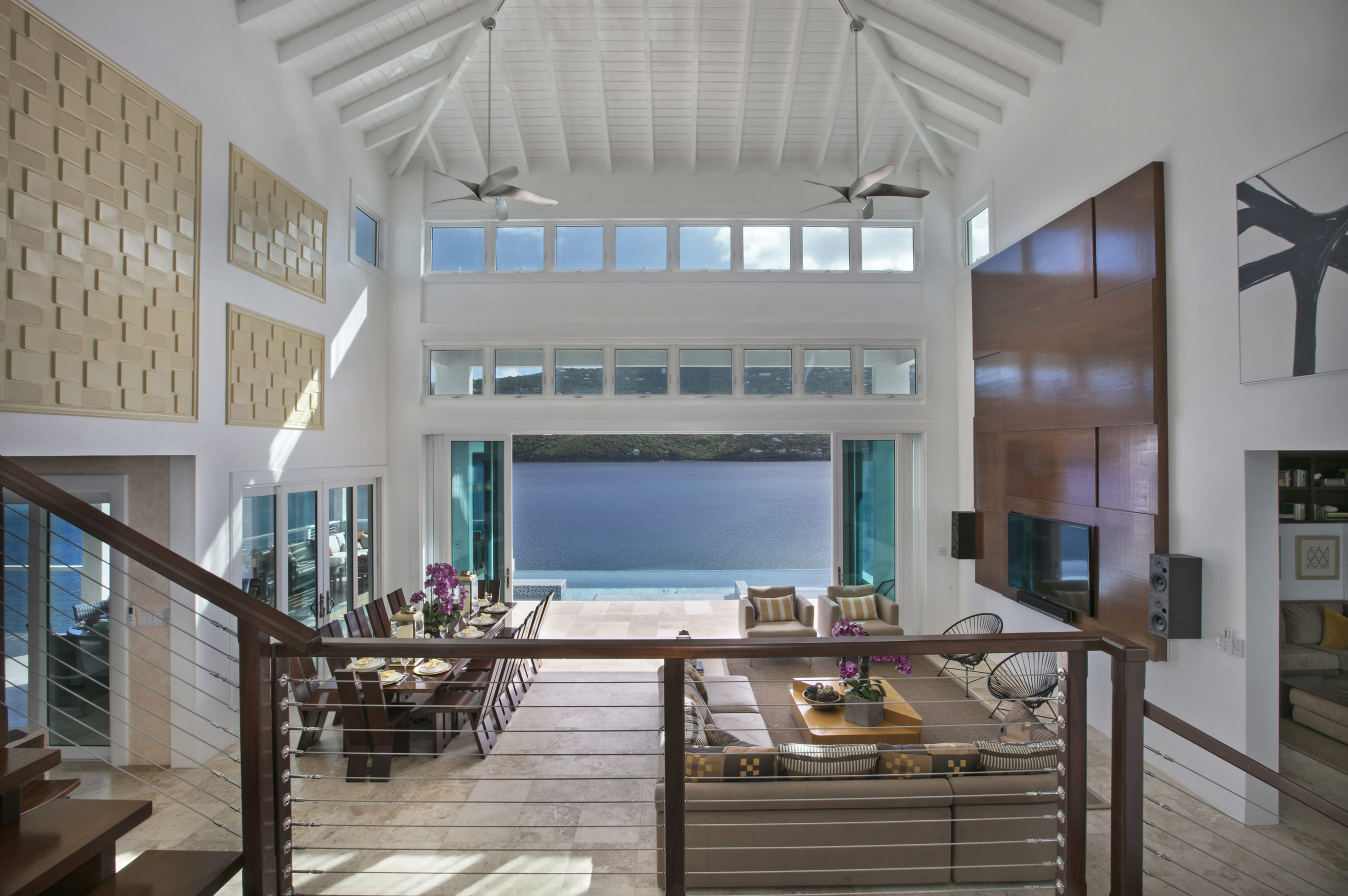 Sand Dollar Hideaway is graciously appointed with luxury custom furnishings and state of the art electronics and applicances. With over 7,000 square feet of incredible interior living space, the villa offers multiple levels of private decks and balconies for outdoor relaxation, an infinity edge pool with built-in bar and spa, a fully equipped gym and direct access to the magnificent beach below. All of the bedrooms have sumptous King size beds, en-suite marble bathrooms with rain showers, super fast internet, smart TVs, and waterfront balconies. Most suites have both indoor and outdoor rain showers overlooking the bay and beach below.
